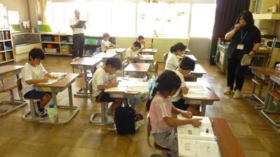 お客様が授業を参観しました。 投稿: 承認者 (09/25) お客様が授業を参観しました。各学年、いつも通り、学習に集中して取り組んでおり、「みなさん、落ち着いて学習していますね。」との感想をいただきました。 【1年 体育、 2年 算数、 3年 理科 4年 算数、5年 算数、6年 理科】 Tweet -