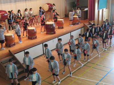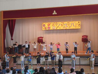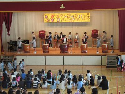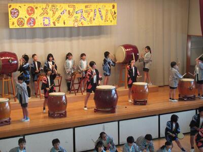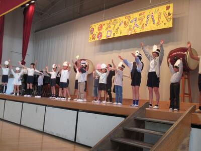 ♪メロディーフェスティバル♪ 投稿: 承認者 (10/28) 24日にメロディーフェスティバルを行いました。計画・運動委員会の児童が企画運営を中心になって行いました。発表は、各学年のカラーが全面に出された素晴らしい発表でした。5年生と6年生は先輩方から伝承された和太鼓「走楽」です。最後は、全校児童が「太陽のサンバ」を踊り、全員が笑顔で終われた会となりました。また、今年もたくさんの保護者の方に参観いただきました。 Tweet -