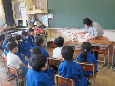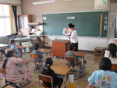 PTA読み聞かせ 投稿: 承認者 (09:19) 朝の時間にPTAの方による読み聞かせが行われました。子どもの成長における『読み聞かせ』の効果についていろいろと紹介されていますが、お話を聞く子どもたちの表情もとても素敵なものです。また、登校してきた子どもたちに「今日は朝の読み聞かせだよ。」と伝えると、パッと表情が明るくなり「やった!」と小躍りする子もいました。 Tweet -